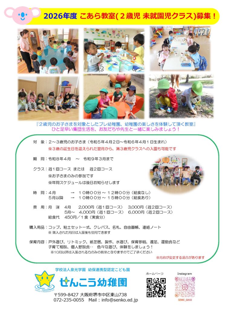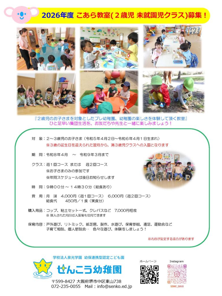 令和8年度(2026年度)2歳児未就園児クラスの入園児を募集をしています🌹